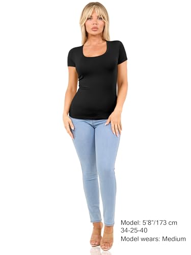• CLASSIC STYLE: Our cotton tshirts for women with short-sleeve and scoop neck designs are a classic combination that never goes out of style. It’s versatile enough to complement any outfit, adding a touch of casual elegance to your look. Available in a range of sizes and colors, these basic tees for women allow you to easily find the perfect fit for your body type and personal style.