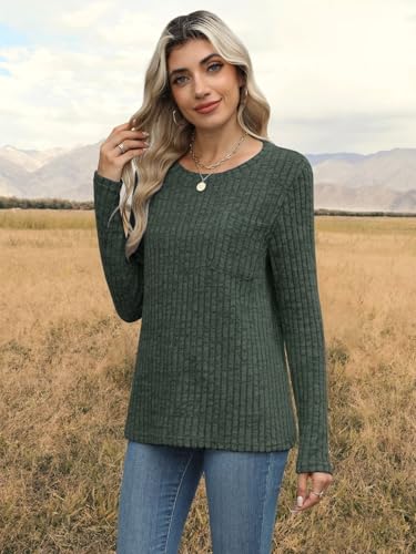 HOT ! Womens Ribbed Knit Sweaters 2025 Fall Casual Long Sleeve Crewneck Pullover Tops with Pocket