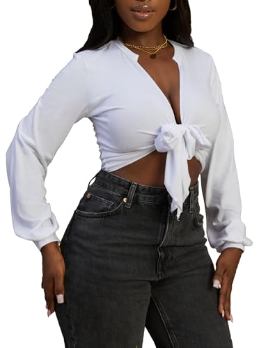 • FEATURES: A sexy tops for women featuring a cute open front, deep v neck, long sleeve, cropped length and tie front design makes you look fashion