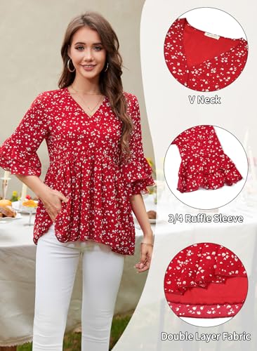 Bulotus Womens Tops Dressy Casual 3/4 Ruffle Sleeve Chiffon Fall Blouses Business Casual Flowy V Neck Shirts 3