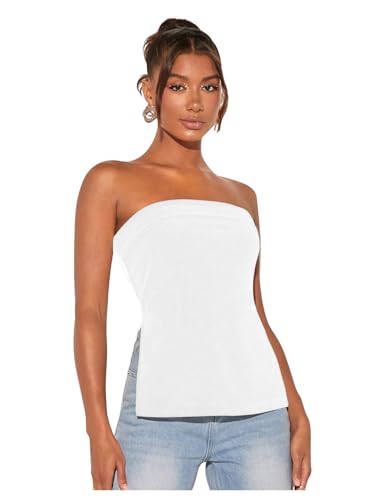 Floerns Women's Solid Strapless Bandeau Split Hem Casual Tube Top 1