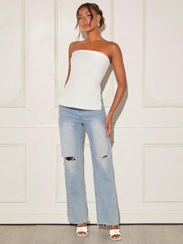 HOT ! Floerns Women's Solid Strapless Bandeau Split Hem Casual Tube Top
