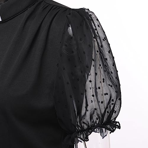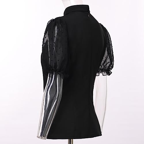 More information about Womens Church Clergy Shirt Tab Collar Tulle Mesh Lantern Short Sleeves Slim Blouse Top