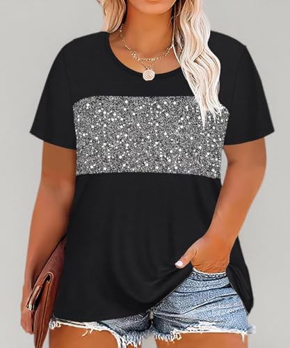 CARCOS Plus Size Tops for Women Short Sleeve Summer Pullover Color Block Crewneck/V Neck Tee Tunic Loose Fit Tshirts XL-5XL 5