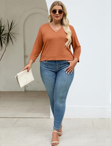 Halife Womens Plus Size Tops 3/4 Sleeve V Neck T Shirts Casual Loose Basic Tunic Tees XL-5X 5