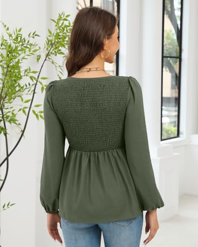 • Design:This long sleeve tops for women is characterized by a simple yet stylish design that is both basic and adorable. The square-neck top features puff sleeves, babydoll silhouette and smocked design, adding a touch of sexiness, slimness, and elegance to this loose-fitting top for women.