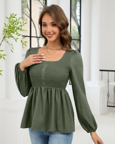 HEYTALALA Womens Peplum Tops Square Neck Smocked Puff Long Sleeve Blouses Babydoll Shirts 2025 Fall Dressy Casual Clothes 7