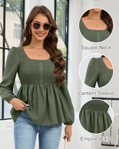 HEYTALALA Womens Peplum Tops Square Neck Smocked Puff Long Sleeve Blouses Babydoll Shirts 2025 Fall Dressy Casual Clothes 5