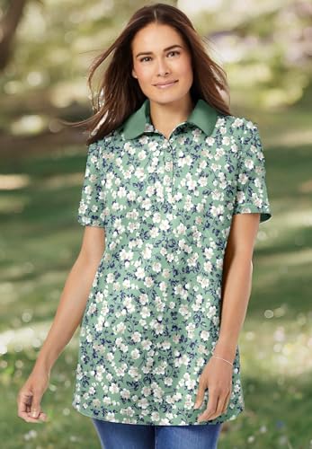 HOT ! Woman Within Plus Size Perfect Short-Sleeve Polo Shirt