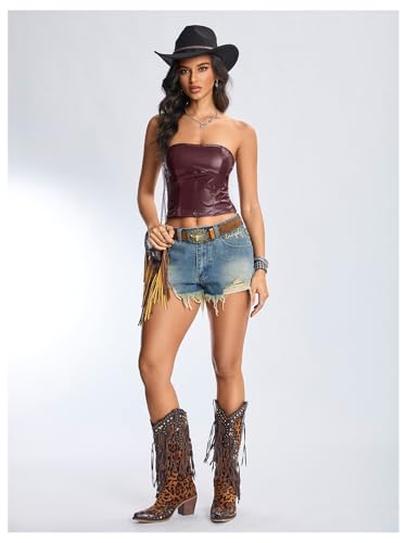 HOT ! Floerns Women's PU Leather Bandeau Lace Up Back Y2k Club Strapless Tube Top