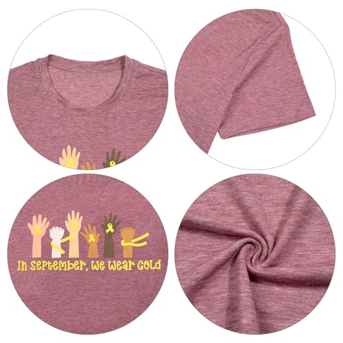 Childhood Cancer Awareness Shirt Women in September We Wear Gold Tshirt Gold Ribbon Pediatric Cancer Short Sleeve Tops 6