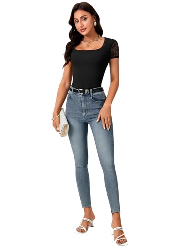 • Features:Scoop Neck, Rib-Knit, Lace Short Sleeve, High Stretch, Slim Fit, Scoop neck skinny tops, Slightly revealing clavicle with a bit of sexy can significantly show your perfect body curve.
