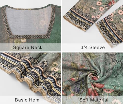• Square Neck 3/4 Sleeve Shirts: Trendy square neck shirts for women, solid color and pretty floral print style, loose casual 3/4 sleeves womens tops. Square neckline show your elegant neckline and more Flattering to match with your necklace. 3/4 sleeve design is easy to modify your arm. Long enough flowy hem to hide belly and hips.