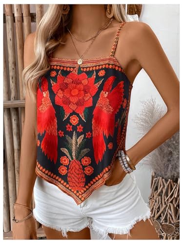 Milumia Women's Boho Floral Hanky Hem Cami Top Vintage Spaghetti Strap Bandana Tops 5