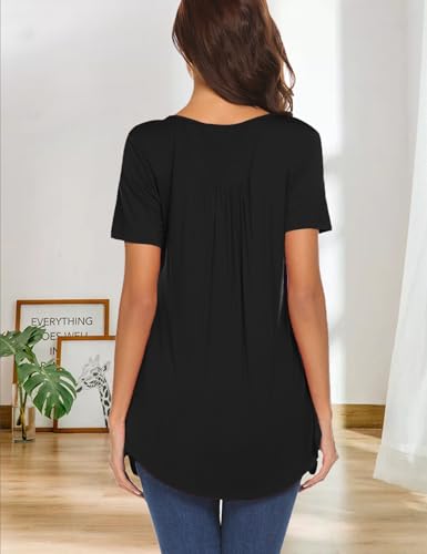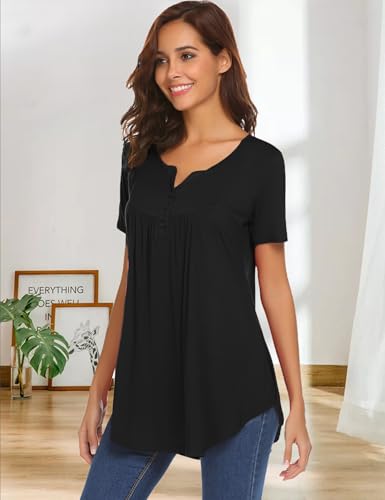 • Features: Womens tunic top comes with short sleeve, Henley v neck top looks more casual and graceful, Button up shirts to show your elegance, Pleated front and back for a stylish design also hide the belly, Flared bottom hem makes the blouse tops flowy