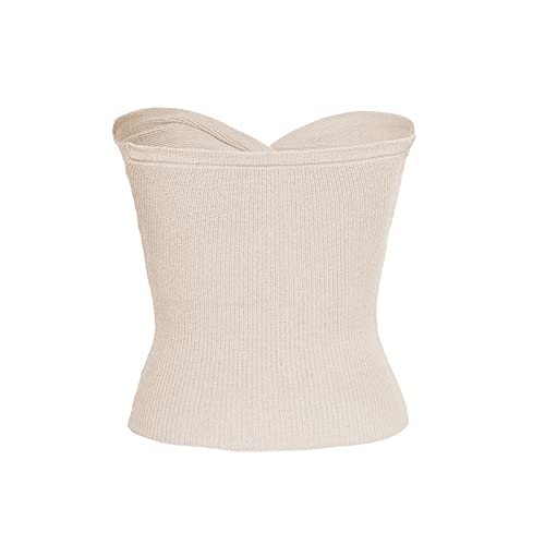 HOT ! Womens Strapless Crop Top Sexy Sweetheart Neck Ribbed Knit Twisted Knot Front Sleeveless Y2K CamisoleTanks Top