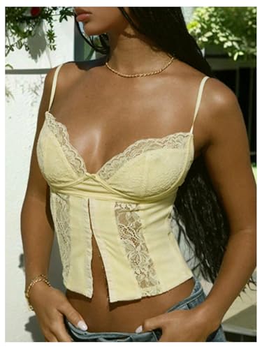 More information about WDIRARA Women's Y2k Lace Cami Crop Top Low Cut Sexy Summer V Neck Camisole Tops