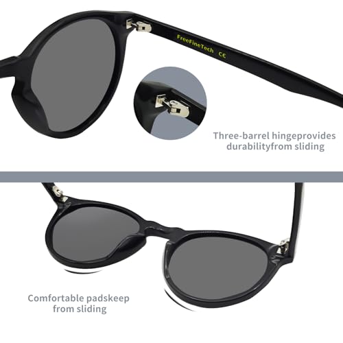 FreeFineTech Polarized Sunglasses UV400 Protection Acetate Frame Metal Vintage Round Sunglasses for Men and Women 3