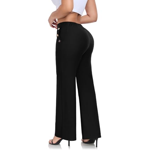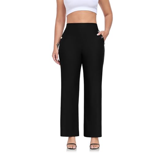 HOT ! Women High Waist Stretch Straight Leg Casual Pants – Comfortable Wide Work Pants with Side Pockets