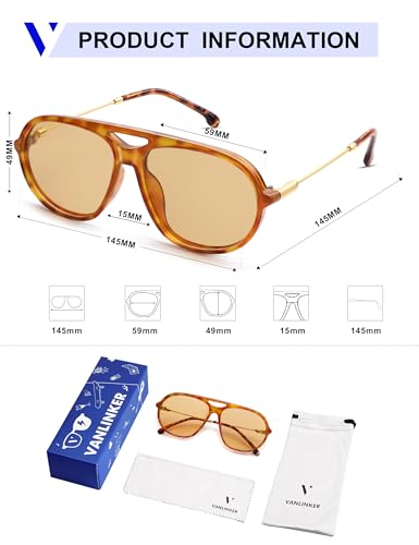 • Trendy aviator Frame:Introducing a new dimension for VANLINKER, these shades boast a sleek gold three-dimensional metal frame and timeless double bridge aviator shape for a super versatile and always-flattering addition to any outfit