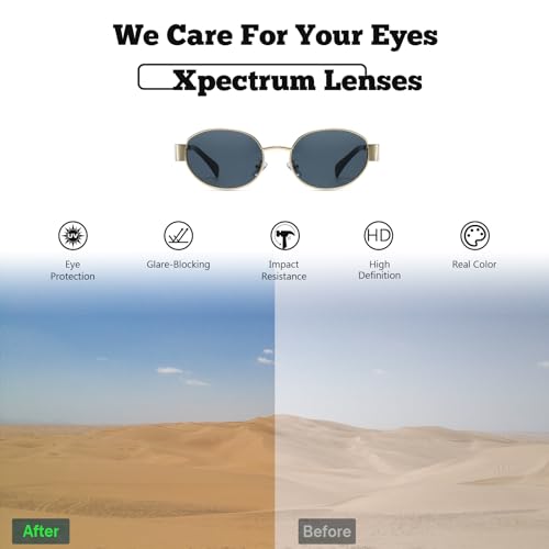 More information about Xpectrum Vintage Retro Oval Sunglasses for Womens Mens, Trendy Classic Shades, Gold Fashion Glasses X9896