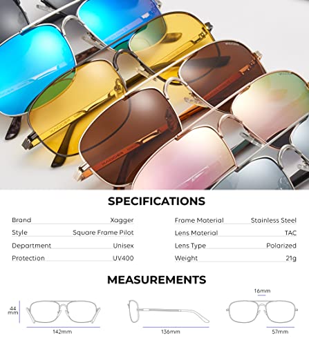 • ICONIC PILOT DESIGN - Complement your unique style with a pair of square aviator sunglasses! Xagger’s retro pilot shades for men stand out with a casual yet sophisticated look and have all the makings to become your favorite go-to sunglasses for any occasion.