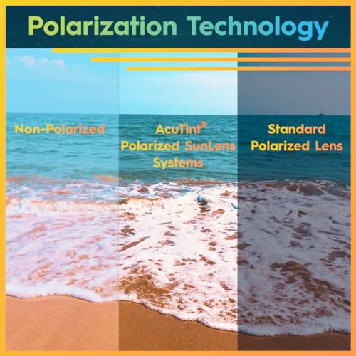 • ACUTINT POLARIZED LENS SYSTEM. Flying Fisherman’s AcuTint Lens System enhances color contrast, sharpens visual clarity, and blocks 100% of harmful UVA and UVB rays. The polarizing filter eliminates reflected glare and helps you to see beneath the water’s surface to spot fish and underwater structure – a must for fishing or boating.