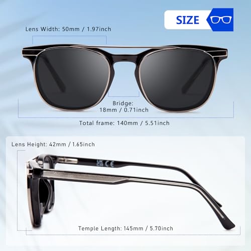 Non Prescription Glasses Eyeglasses Men with Magnetic Clip On TAC Polarized Sunglasses Acetate Frame Clear Lens 6