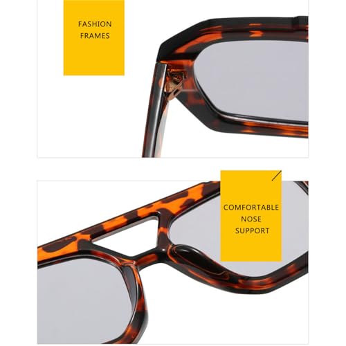 • The fashion sunglasses features a flat top and double nose bridge design, not only is the oversized and Square design makes slim frame looks very delicately, but also the aviator shape makes the overall look of the sunglasses more retro. With the super classic pilot shaped frame and oval lenses, take a sense of high retro fashion on any occasion.