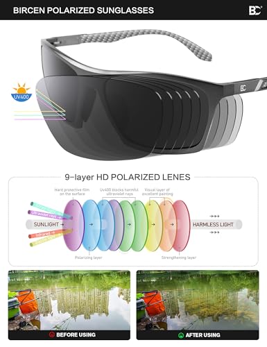 • Anti-Sea Water Plarized Lens: Bircen men's polarized uv prorection sunglasses feature high-quality UV400 TAC lenses, which are designed to filter out 100% of harmful UV rays, ensuring a clear and true vision and providing good protection for your eyes. in addition, the lenses are coated with an anti-sea water coating to resist corrosive substances,this coating helps prevent damage to the lens caused by exposure to saltwater,thereby prolonging the service time of the lens.