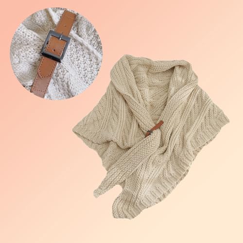 New Fall Winter Knitted Triangle Shawl with Leather Buckle, Multifunctional Shawl for Ladies 1