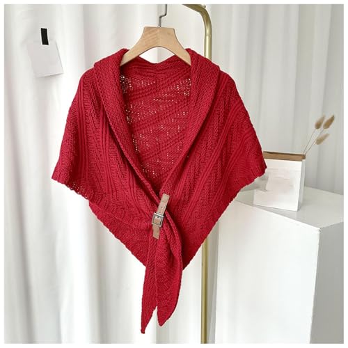 New Fall Winter Knitted Triangle Shawl with Leather Buckle, Multifunctional Shawl for Ladies 5