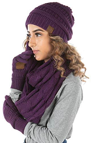 • LUXURY SET: Experience the luxury of our hat and scarf set for women purple, a Funky Junque Hat Scarf Glove Set that combines comfort and style. This purple hat and gloves set for women is made from 100% acrylic, providing a warm and cozy feel akin to satin or cashmere.
