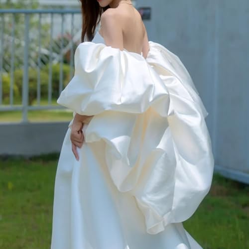 FREEBLOSS Wedding Satin Shawl Puff Sleeves Detachable Sleeves Cape Bridal Bolero Evening Party for Wedding Dress Woman 49"*15.75" 4