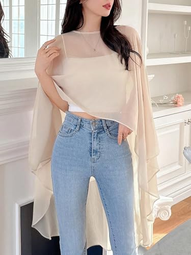 Milumia Women's High Low Shawl Chiffon Capelets Wedding Bridal Cape Sheer Overlay Poncho 1