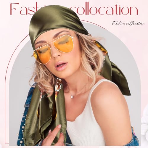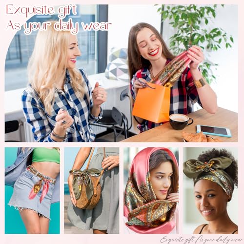 SATINIOR 35 Inch Silky Head Scarf 2 Pcs Large Square Neck Scarf Sleeping Hair Wrapping Satin Bandana for Women(Pink, Green,Retro Style) 7