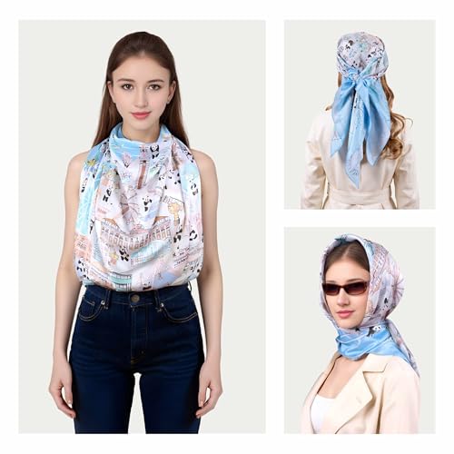 • Material: The fashion scarf for women made of 100% high quality polyester satin with the size of 35x35 inches( 90x90cm), good touch feeling,soft, smooth and shiny; Square bandana, classy neckerchief for women