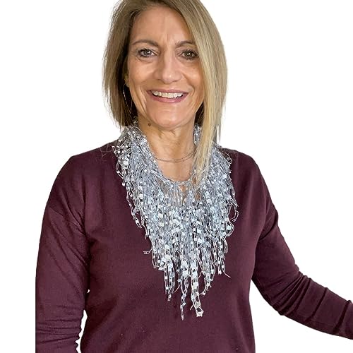 • ✅ Lightweight sparkly scarves for women made from soft, fine, but extremely strong yarns with metallic threading. Can appear like chunky statement jewelry, long necklaces or fashion scarf jewelry.