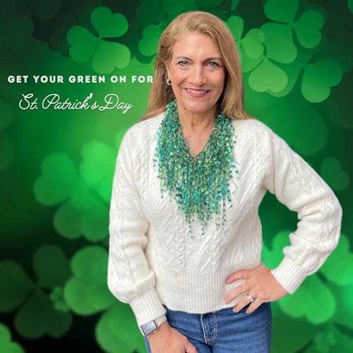 Green Irish Scarf for Women Lightweight - Dressy Lace Scarf with Fringe - Fringe Necklace Jewelry for St. Patricks Day, Christmas, Mother's Day Gift or Birthday (Green) 6