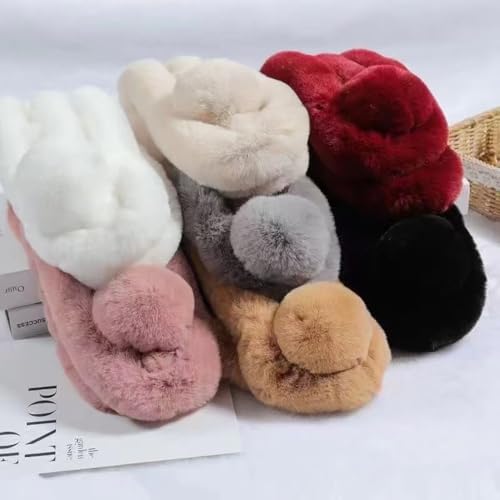 Rex Rabbit Fur Scarf, Fur Neck Scarf with Fuzzy Ball,Women Winter Super Soft Thick Warm Furry Plush Scarf 7