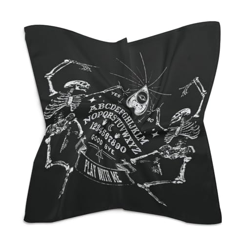 Black Gothic Skeleton Magic Witch Ouija Board Fashion Square Neck Scarf Head Kerchief Hair Bandana Headscarf for Women 6