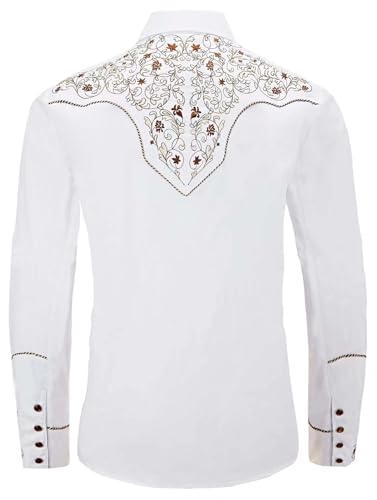 • EXQUISITE EMBROIDERY: Classic cowboy shirt with two-tone floral design on the chest, back and cuff. Retro and full plate embroidery make this dress shirt outstanding and eye catching.