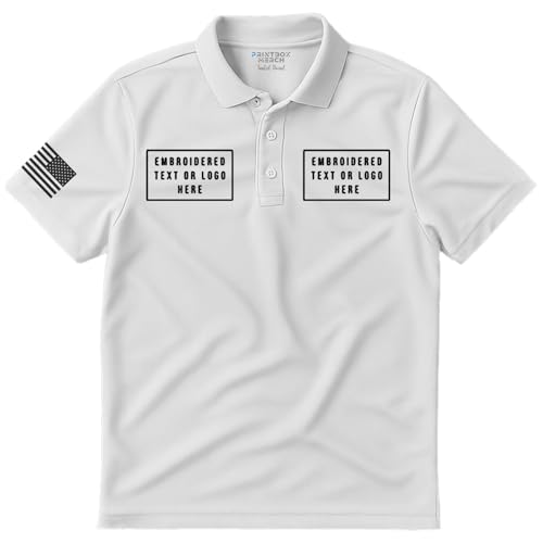 Embroidered Custom Polo Shirt, Customized Embroidery Polo Shirts, Add Any Logo or Text, Perfect for Mens Golf Work Business White 7
