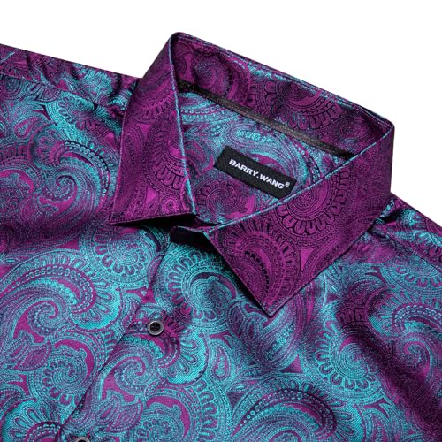 Barry.Wang Men Dress Shirts Paisley 70s Disco Shirt Button Down Silk Long Sleeve Tops for Wedding/Prom/Party/Nightclub 5