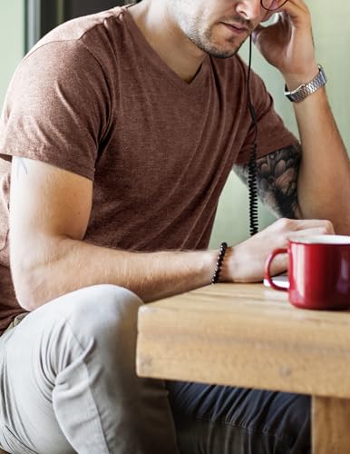 • The easy-tear-away neck tag reduces irritation, while set-in sleeves enhance your range of motion. The V-neck style looks equally great whether you're at the gym or out at the pub, MIER mens V-neck T-shirts provides both comfort and performance