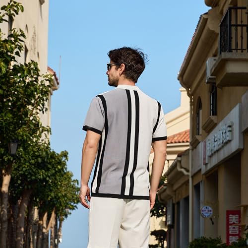 More information about Men's Fashion Knit Polo Shirts Vintage Striped Knitting Shirts Ribbed Slim Fit Golf Shirts