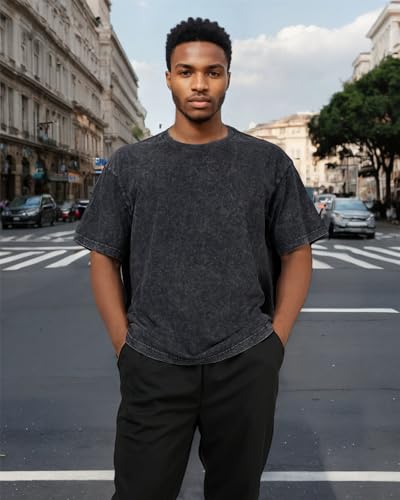 • 【Feature】If You Want Oversized Fit,Please Buy One Size Bigger!! Mens heavyweight tshirt, solid mens vintage t shirts, streetwear t-shirts, mens crewneck t shirt style.Mlevate your style with our men's cotton t-shirt boasting a classic vintage look. The acid wash color and oversized fit exude effortless charm, ensuring you stand out in any crowd