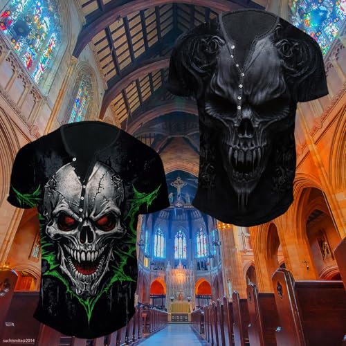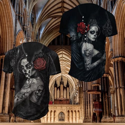 • Features:The v neck henley shirts top adopts skull print, Short Sleeve, 8pcs buttons, retro style.