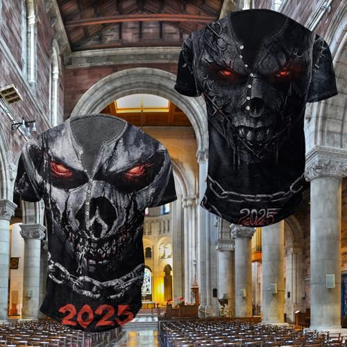 ZOCANIA Mens Henley Shirts Skull Print V Neck Short Sleeve Casual Button Down T-Shirts Vintage Tees Top Summer Henley Shirt 2