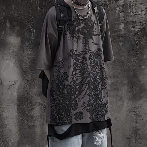 HOT ! Women Men Y2K T Shirt Skeleton Emo Grunge Oversized Gothic Tee Graphic Streetwear Techwear Alt Baggy Dark Academia